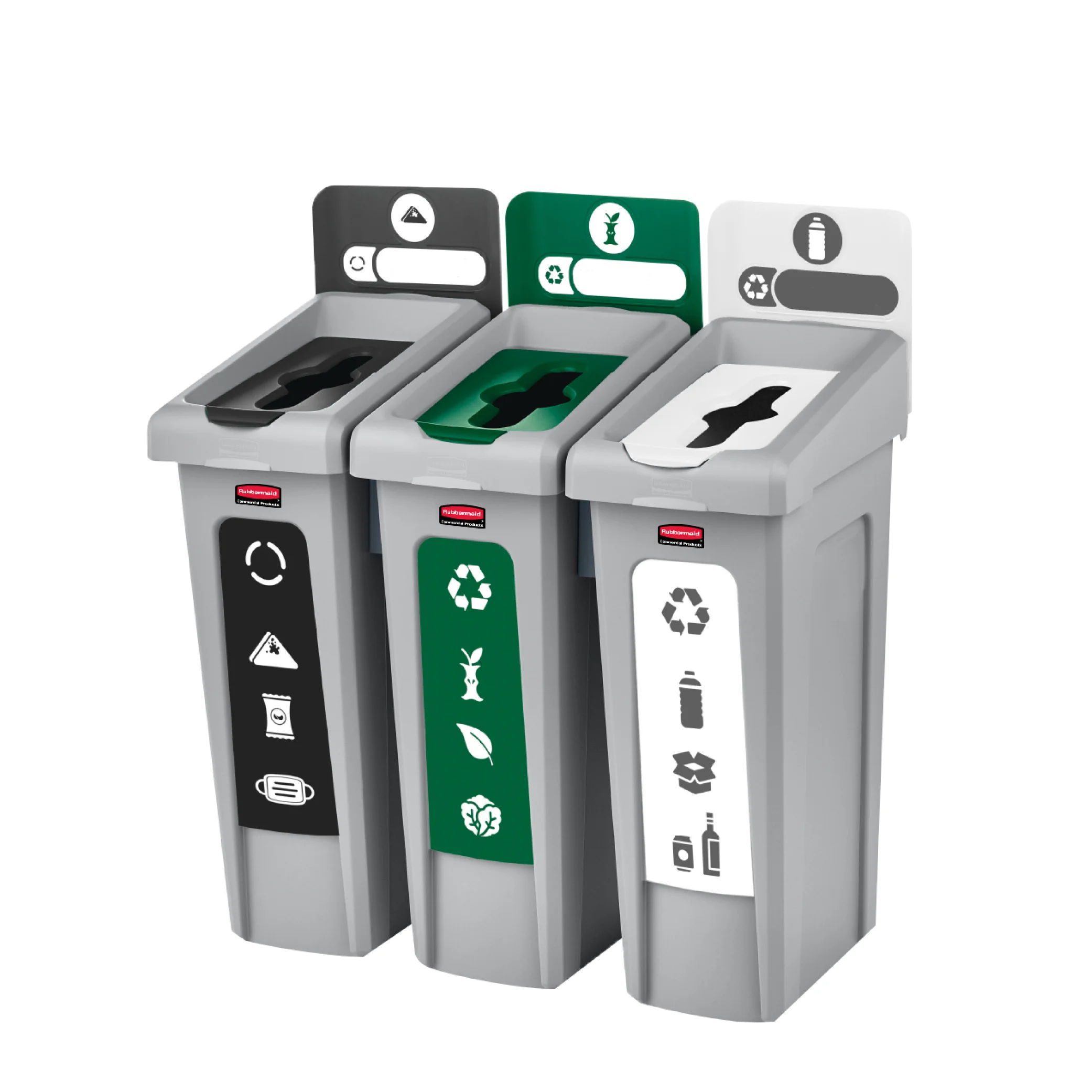 Los contenedores Slim Jim® son una solución versátil y personalizable que ofrece una apariencia elegante y profesional. Tienen una garantía de 10 años, que demuestra su resistencia y durabilidad. También tienen canales de ventilación, que reducen el esfuerzo para sacar las bolsas en un 80%, mejorando la productividad y reduciendo el riesgo de lesiones. Además, puede seleccionar un kit de un punto ecológico o crear su propia estación, eligiendo entre las opciones de insertos de tapas, carteleras y etiquetas de categorías de residuos, en combinación con un kit de inicio. Así, puede personalizar su estación de reciclaje según el tipo y la cantidad de residuos que genere su negocio. Si desea solicitar su estación de reciclaje Slim Jim® de acuerdo con sus necesidades, puede escribirnos directamente a nuestro WhatsApp, y le atenderemos lo antes posible.